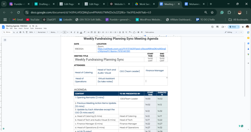 With years of experience in virtual assistance, data management, and project coordination, I have honed the skills to understand and efficiently meet client requirements. I have worked with organizations across various industries, including education, administration, and nonprofit sectors, ensuring seamless operations and effective task execution. Whether managing schedules, handling communications, analyzing data, or optimizing workflows, you can count on me to deliver with precision and professionalism.